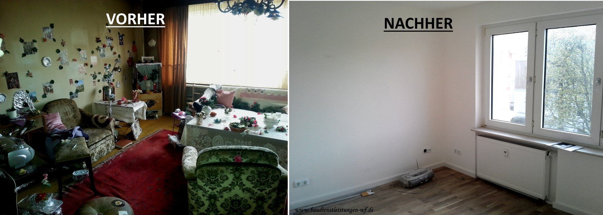 Wohnzimmer einer Kundin VOR und NACH der von uns durchgeführten Renovierung