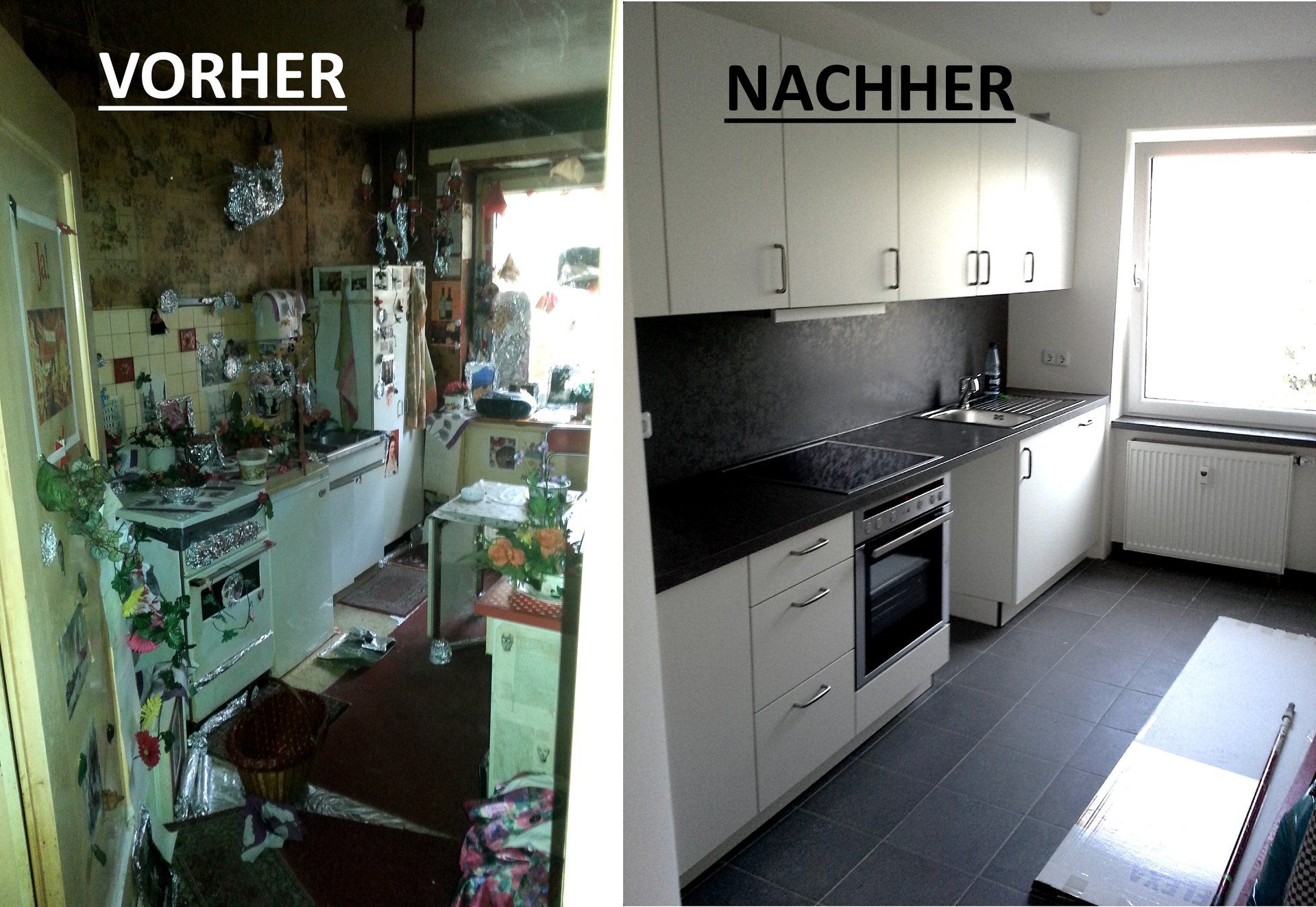 Küche einer Kundin VOR und NACH der von uns durchgeführten Renovierung
