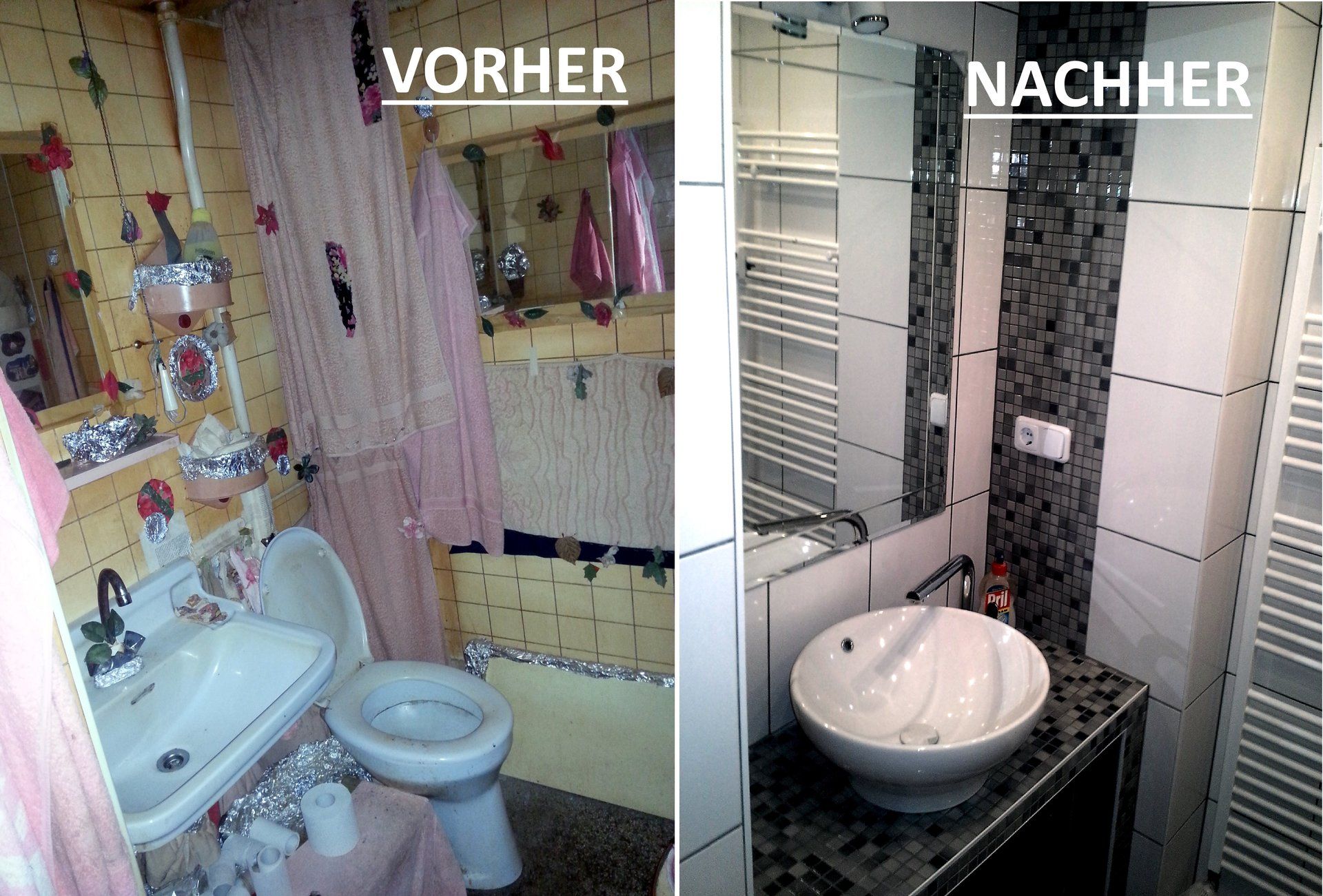 Badezimmer einer Kundin VOR und NACH der von uns durchgeführten Renovierung